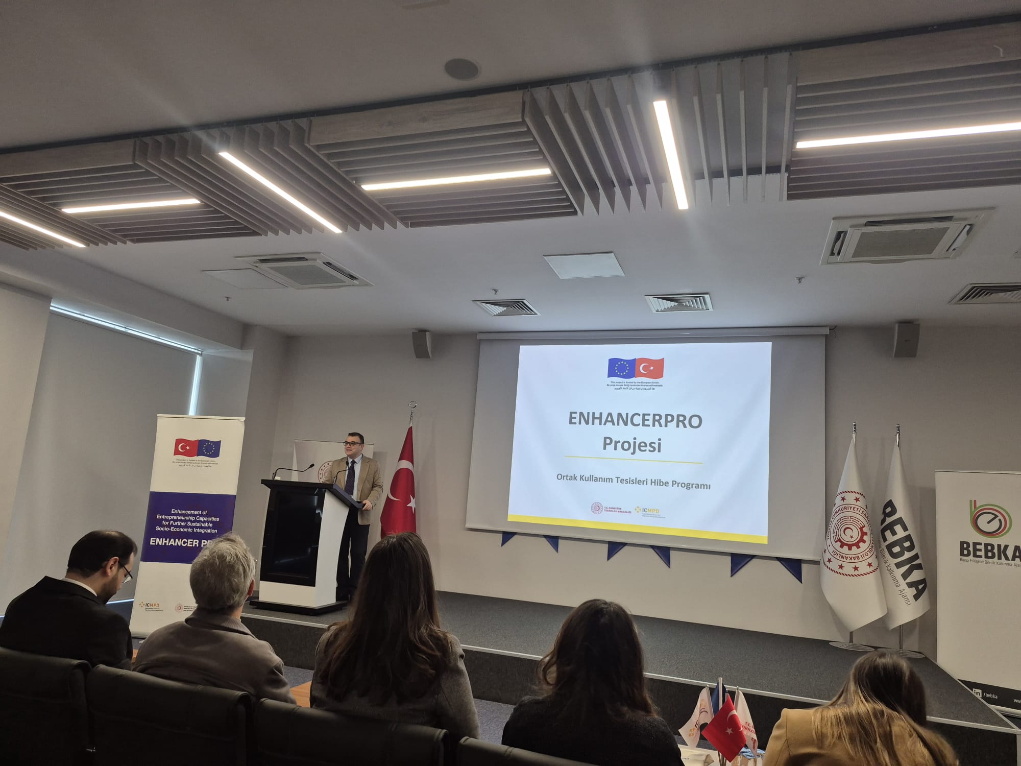 BEBKA ev sahipliğinde, Avrupa Birliği tarafından fonlanan ve Uluslararası Göç Politikaları Geliştirme Merkezi (ICMPD) tarafından Sanayi ve Teknoloji Bakanlığı Kalkınma Ajansları Genel Müdürlüğü koordinasyonunda yürütülen ENHANCER PRO Projesi kapsamında ilan edilen Ortak Kullanım Tesisleri Hibe Programı, Bursa’da düzenlenen bilgilendirme toplantısı gerçekleştirildi.
